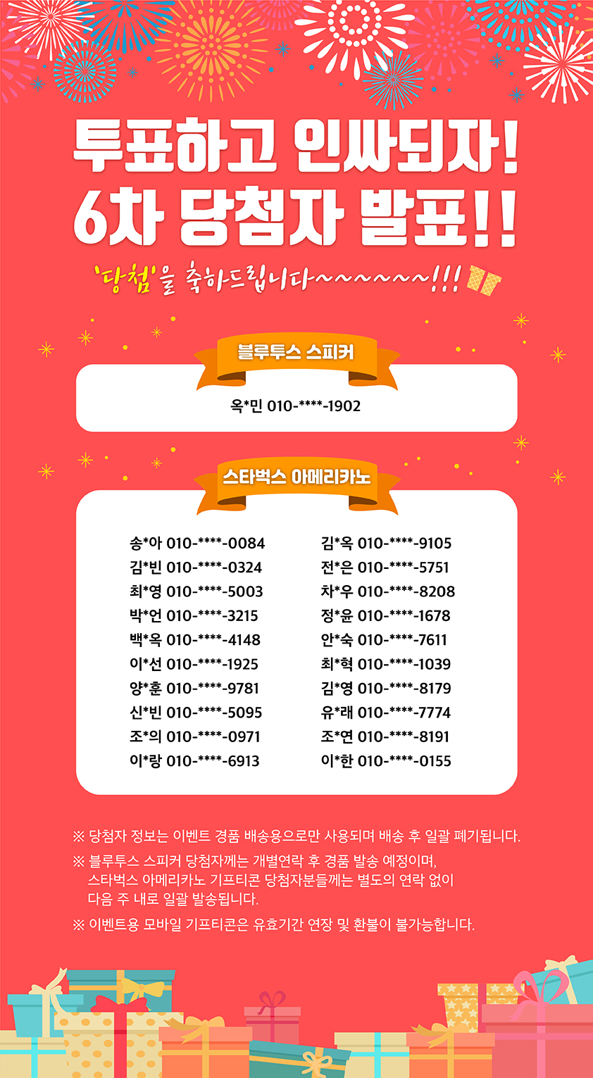 투표하고 인싸되자! 6차 당첨자 발표